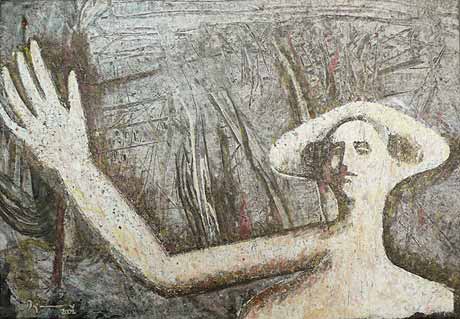 capezas mágicas: busto con mano, Acryl auf Leinwand, 43 x 62 cm